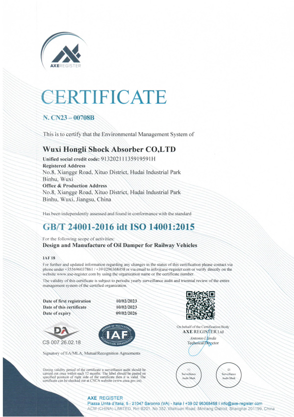 ISO14001认证证书